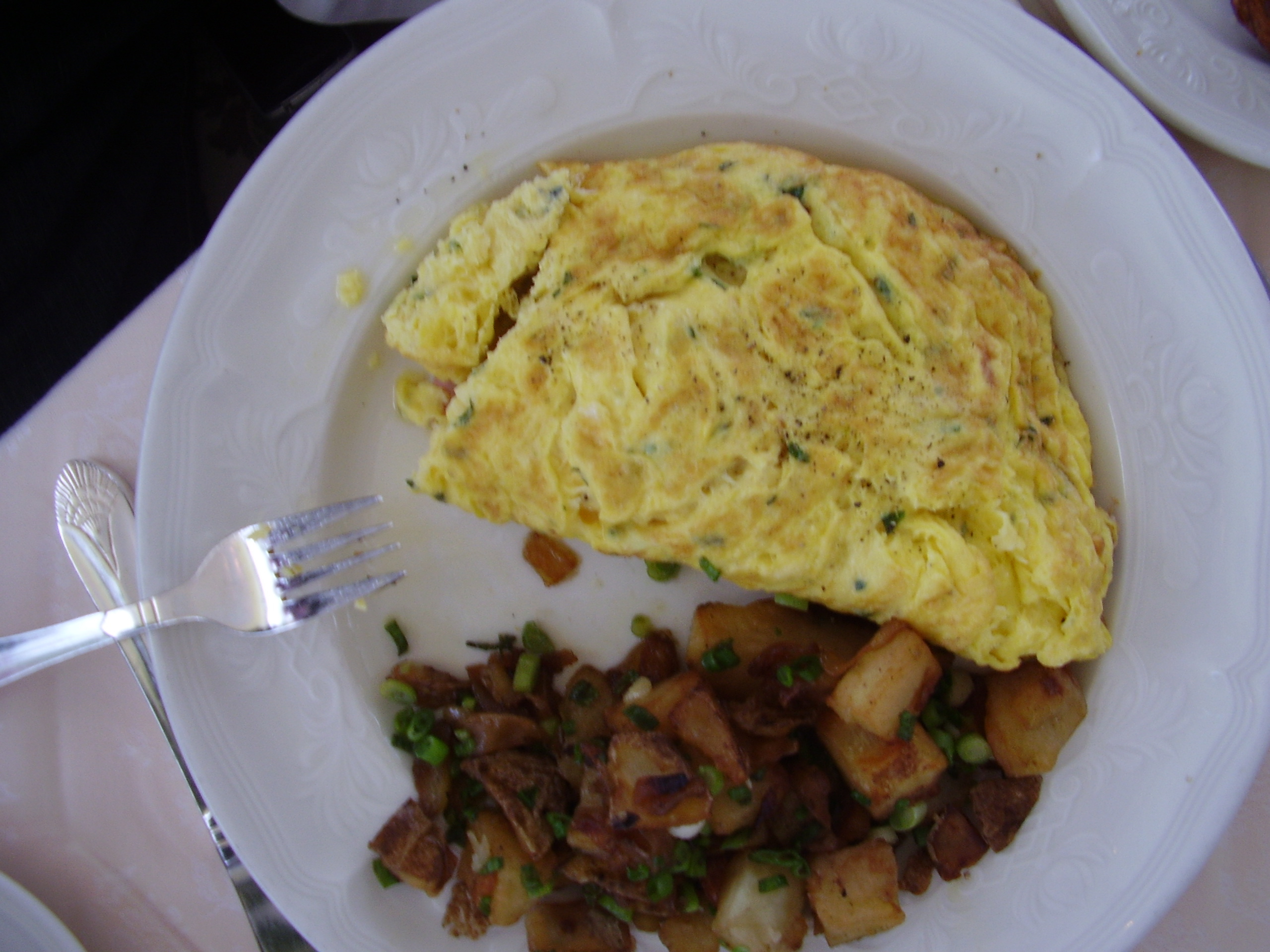 After a cold walk, we set down to a Sunday brunch of an omelette for me