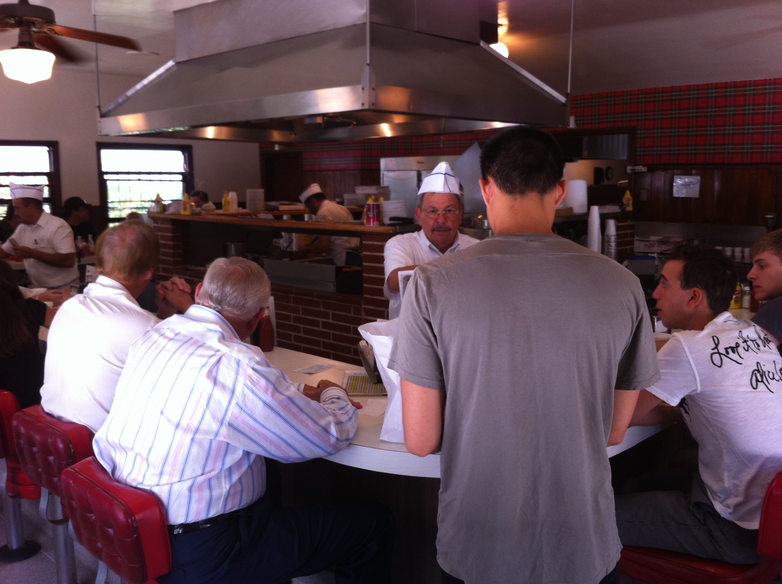 Looking back, this is the first burger place that I can find of which I took a picture – The Apple Pan in Los Angeles. Madison and I went to Los Angeles for her 16th birthday get-away. Before we left, I googled “best burger los angeles” and this was one of the places that popped up. Very limited menu and not much more seating (26 stools around a U-shaped counter).