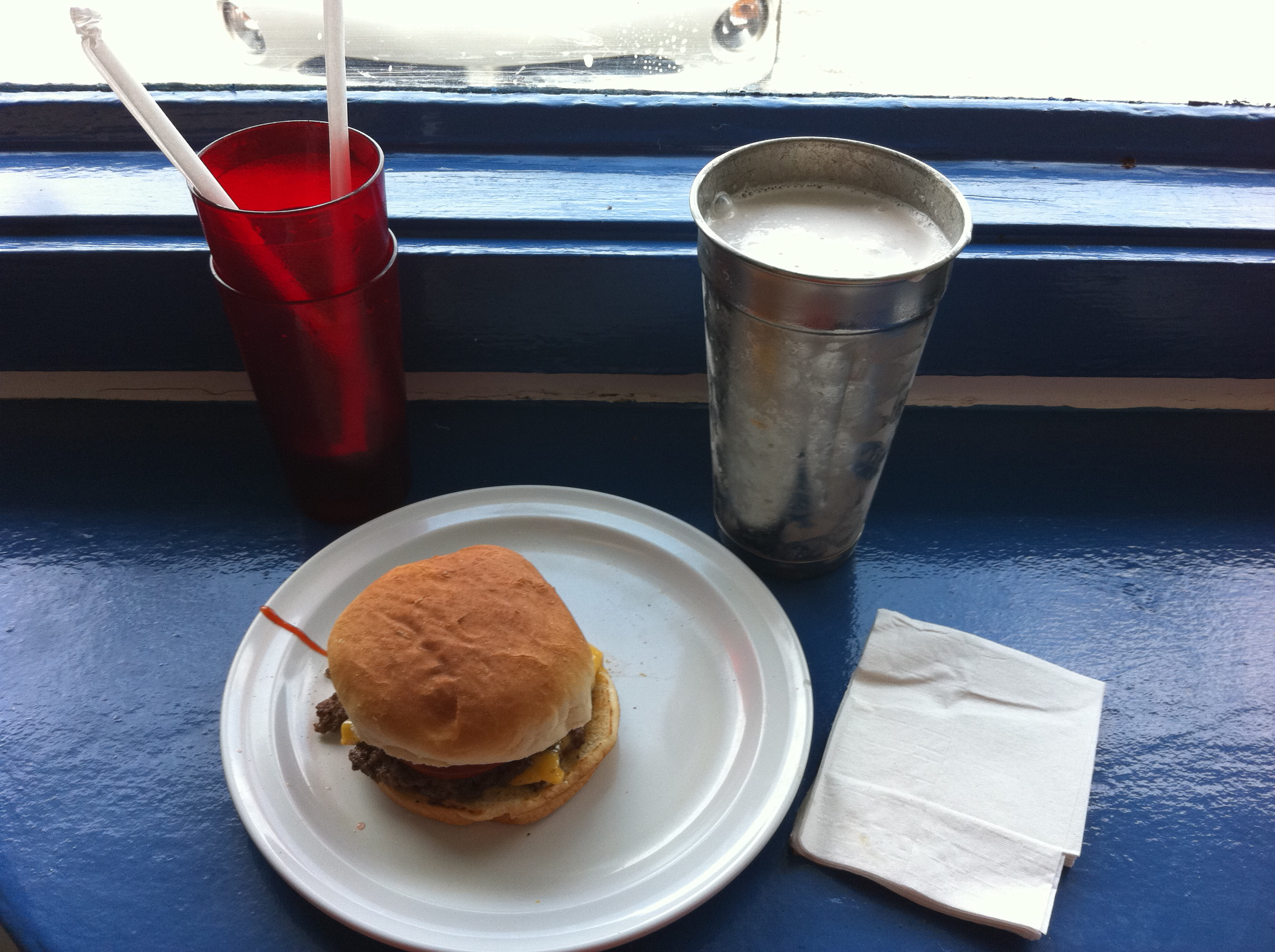 With a modicum of choices, we decided to split a shake and ordered a cheeseburger apiece.