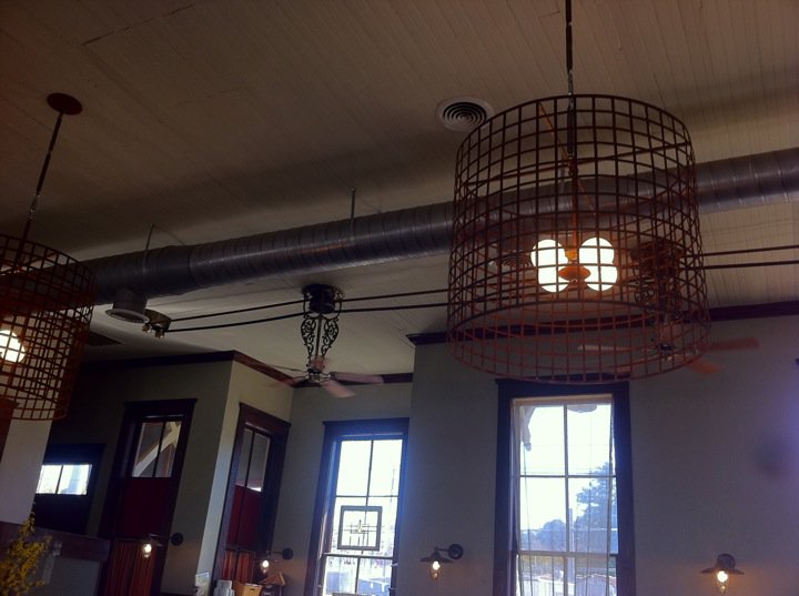 It’s a shame, because the space itself is great inside. It is a converted railroad station. Being the geek that I am (that counts for architecture, too), what really caught my eye were some of the internal features. The most fascinating of which was the ceiling fan system. Each fan was connected by a giant series of belts – the first powered by the motor and each of the rest running off the power to the first. I talked to the hostess about it, at length to the chagrin of Jo, and she said that the system was bought for the depot in the late 30s and had never been installed. When they took the space over, they found it still in the boxes, and put it up. At the time we were there, the menu was focused strongly on locally sourced ingredients.