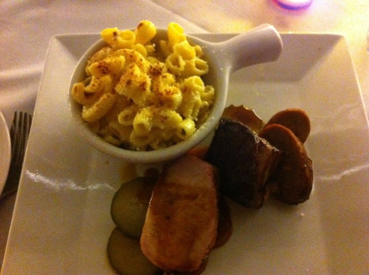 I followed it up with a dish they called “Three Little Pigs” – pork belly, pork loin and house made sausage, with mac-n- cheese. The pork loin and belly were both prepared extremely well. The sausage was a little odd, but overall, a very good meal.
