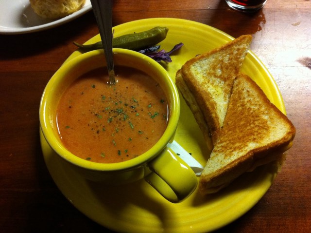 “Choose one of the following sandwiches, served on Texas toast with a big mug of tomato soup or your choice of a farm fresh side: