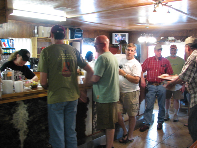 I heard about this place from this bunch of guys before I went. They raved about the weekend ribeyes. First we went on Thursday night. Here are some of the guys (including me) in line, waiting to order. It’s quite a simple place. Actually built in front of an RV park. A couple of big tables and some small tables inside, picnic tables on the porch and in the side yard.