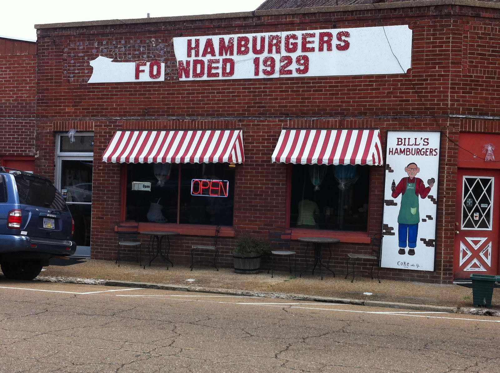 So we were heading to Memphis and, lo and behold, along the future I-22 corridor between Birmingham and the birthplace of rock ‘n roll, lay two burger joints on “the list”.  The first was Bill’s Hamburgers in Amory, MS, just across the Mississippi line, leaving Alabama.
