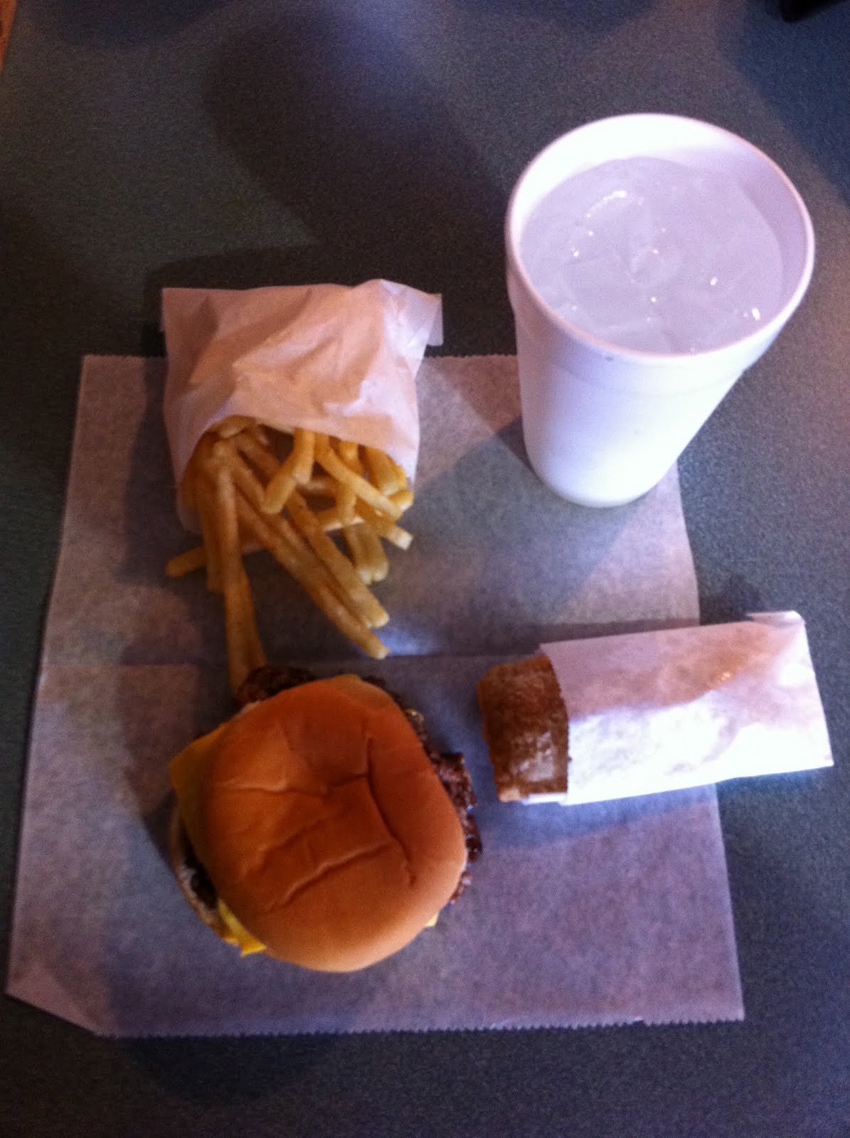 * In case you were wondering – that was thinly veiled reference to the first line of the Outsiders, which I quote most of the time when I walk out of dark place into the bright sunlight.   The actual beginning to the book involves a theater and ride home, as opposed to a restaurant and another burger.