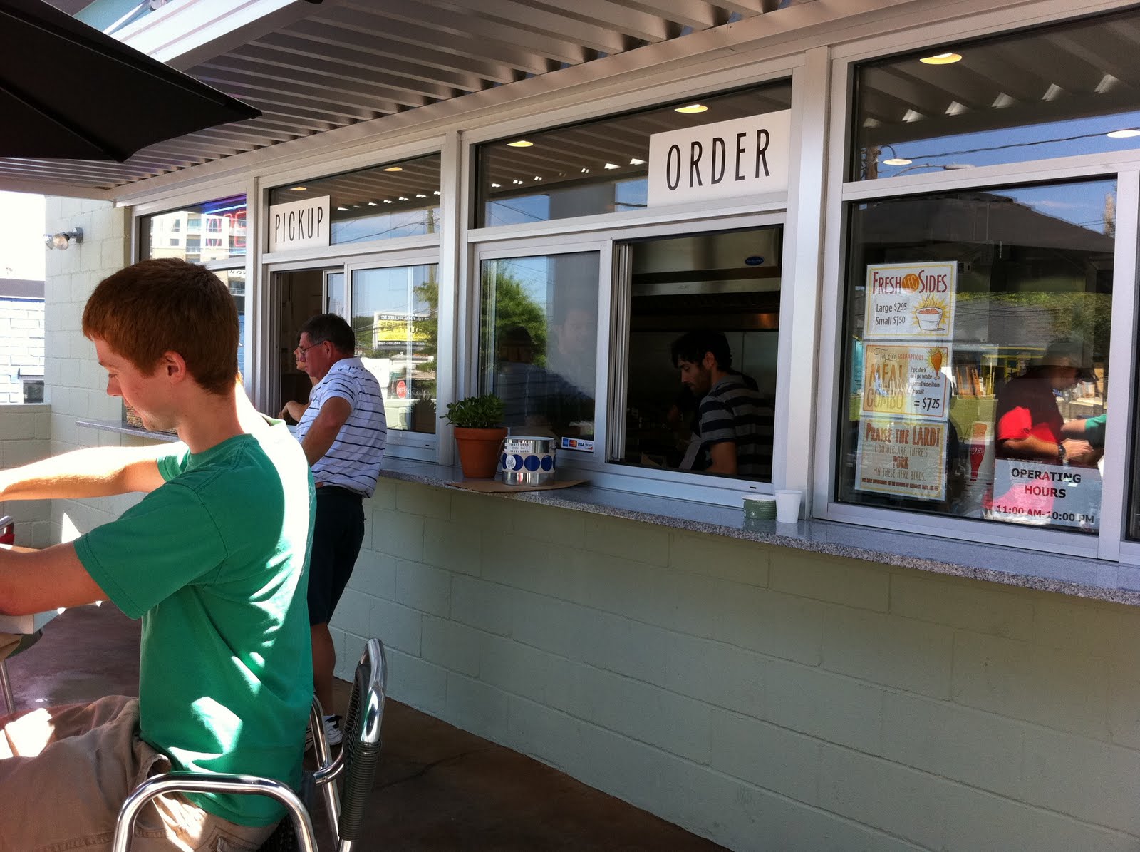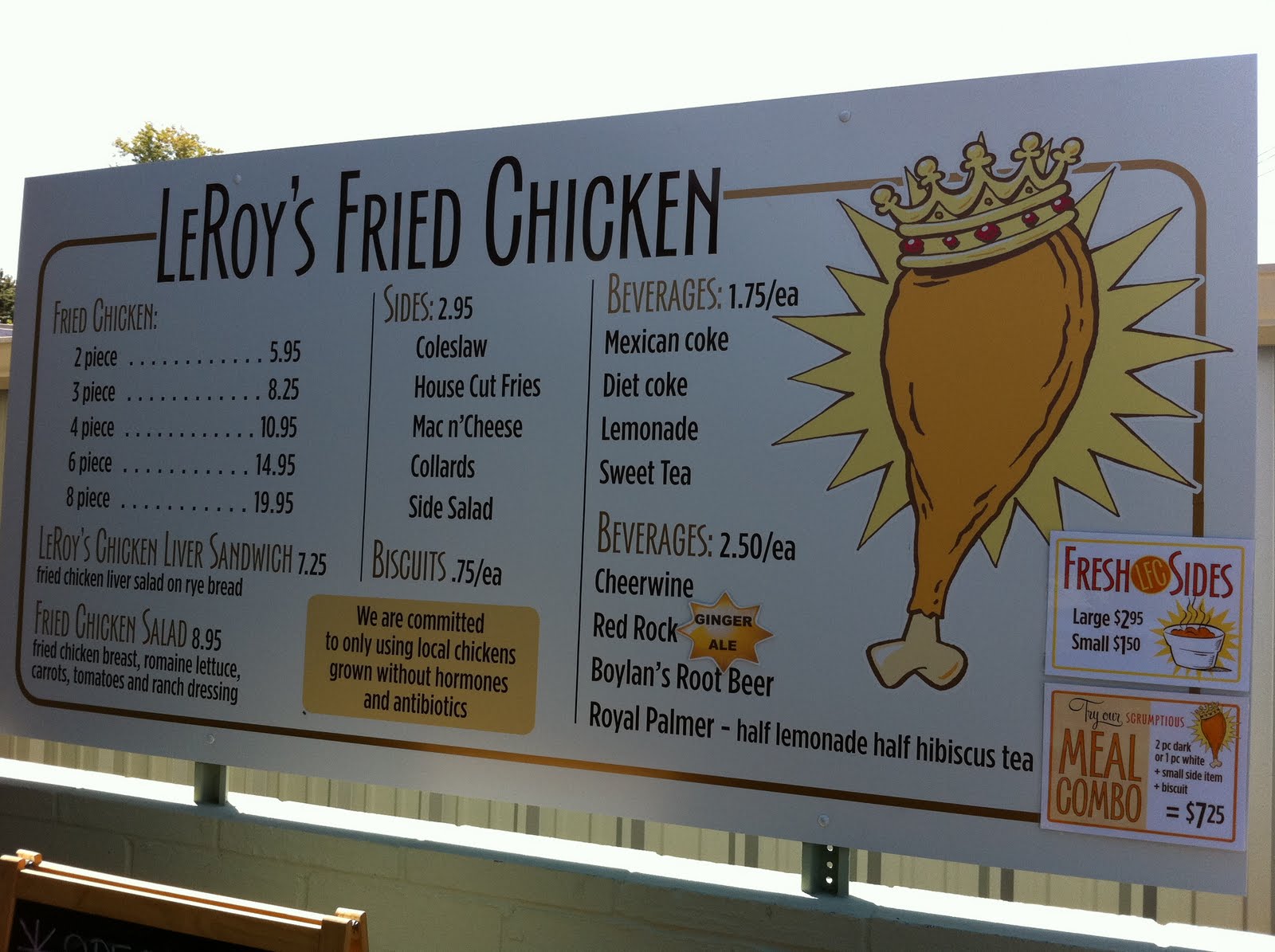 You see, the sign on Howell Mill has everything in all caps. But when you get to the menu itself, it’s not Leroy’s, but LeRoy’s Fried Chicken. Very different. “LeRoy” is Julia LeRoy. Not quite the cook I had in mind. Or the fried chicken. LFC is a walk-up, for all intents and purposes. They have three tables and a total of six chairs. I stood, as there was a party of three (rudely using a fourth chair for their bags) and a table of two. I think they intend to be a carry-out place. More about that in a minute.