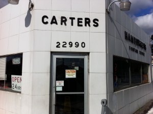 On my way from the airport, I had to make a U-turn when I missed my turn due to a road closing. While I’m sitting at the light waiting to get back on M-39, I see Carter’s Hamburgers out my window, on the access road.