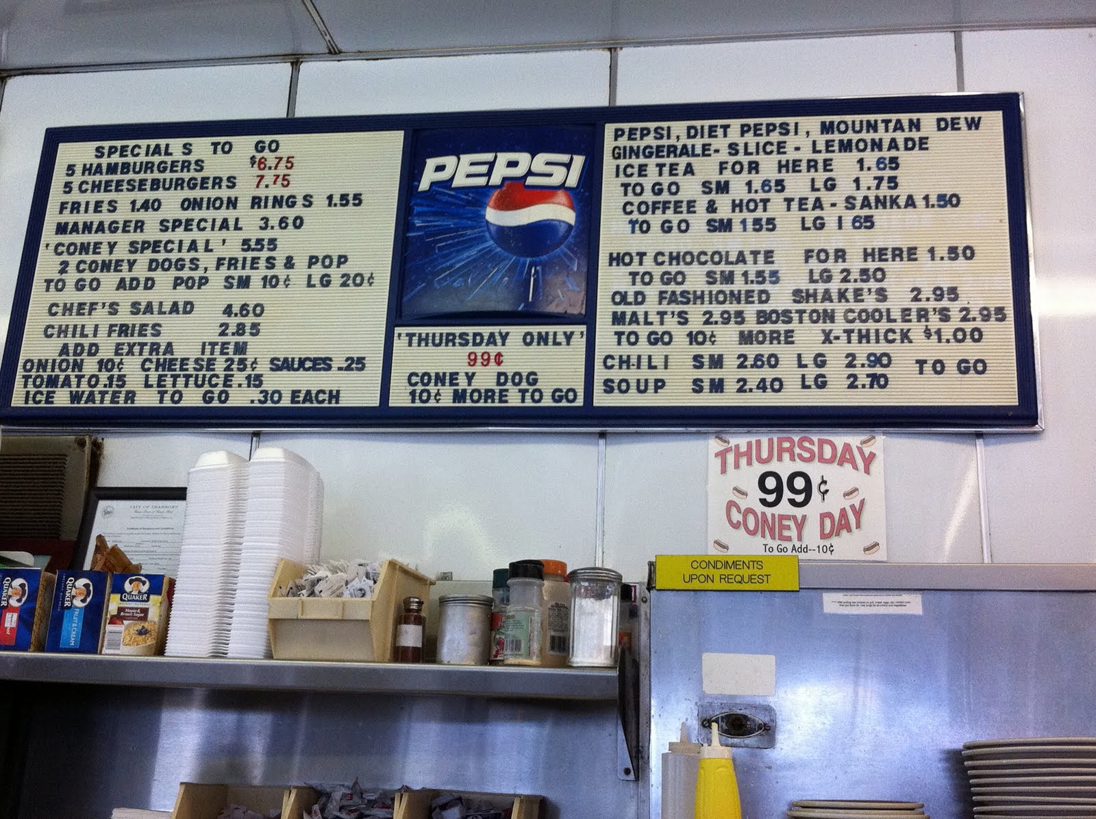 The burger was good, crisp edge with a moist bun. The two things I noticed about Michigan burger joints: they love Spanish onions (every place I went had grilled onions for the burgers and assumed you wanted them) and they’re Pepsi people. The latter would ultimately lead to a problem for me, and one more reason to not live in a place where it gets that cold in the winter.