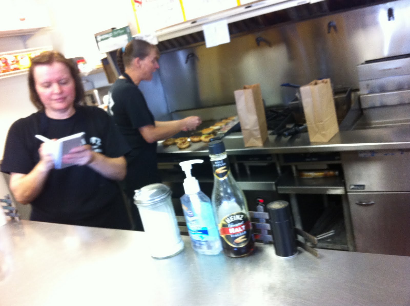 You know, there’s a lot to be said about working in a diner for THAT long.  You get to know each other.  You get to know your customers (several other folks came in while I was there and Tammy knew their orders and their names).  And you really get to know how to make a burger.  The burger?