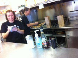 I tell her that I’m from Atlanta, and I’m here on the Hamburger America trail.  She says, “So you know George?  He’s the NICEST guy.”  I ask her how long the two of them have been working here together.  She says for the entire fifteen years she’s worked there she has worked this shift.  Tammy, on the grill, has been there twenty-seven years.  The girl that makes the burgers on the morning shift?  Forty-three.