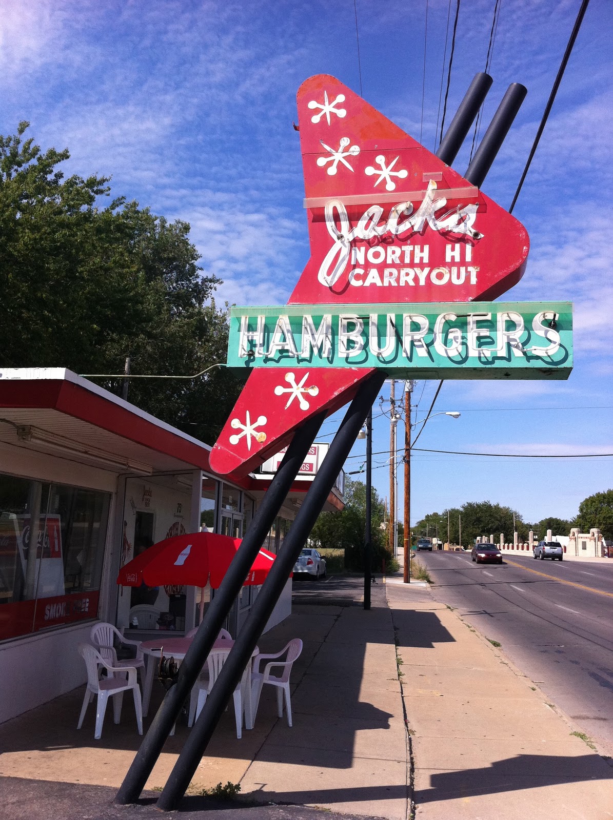 Starting our pilgrimage to the Walnut Valley Festival, we flew into Wichita. Consulting the oracle at Hamburger America before we left, I had two destinations in mind. The first was Jack’s North Hi Carryout.