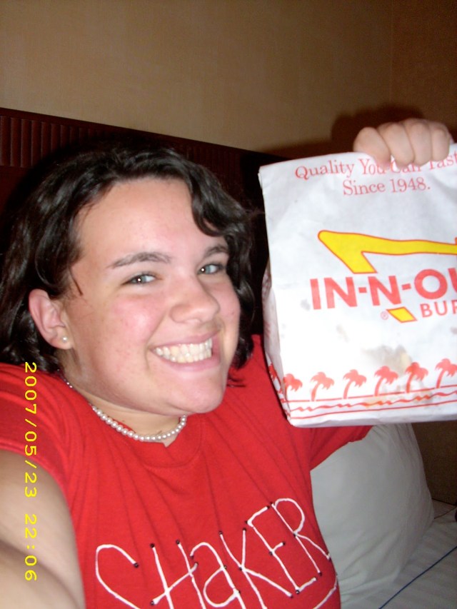 As I said above, we discovered In-N-Out in 2004 when we were out west. When Madison and I went on her Excellent 16th Birthday Adventure, she and I found an In-N-Out drive thru and swung through for burgers and fries. I ran across this photo looking for something else. Serendipity!