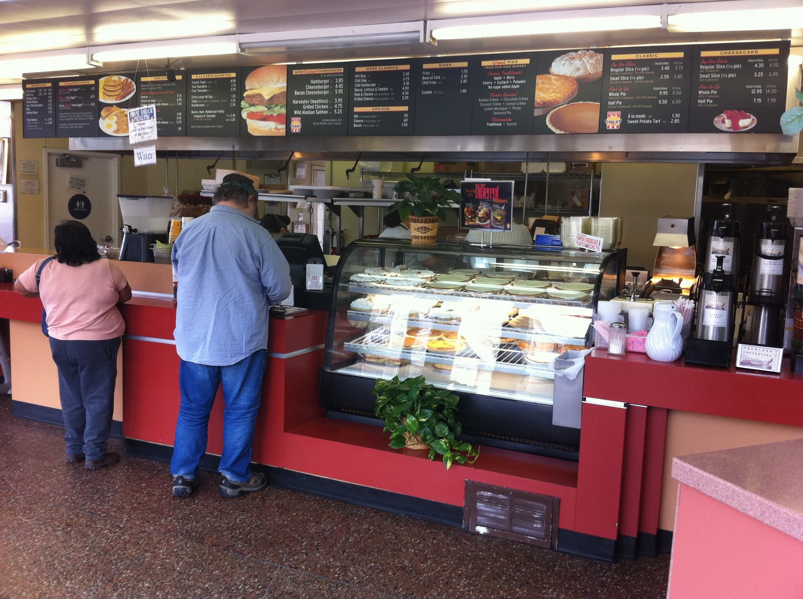 The first thing I noticed was the pies. They sold pies by the slice, along with half and whole pies from behind a giant cooled baker’s shelf (on the right side of the photo). Lots of pies. In fact, most of the people that came in while I was eating my burger ordered some part of a pie (or more) and left.