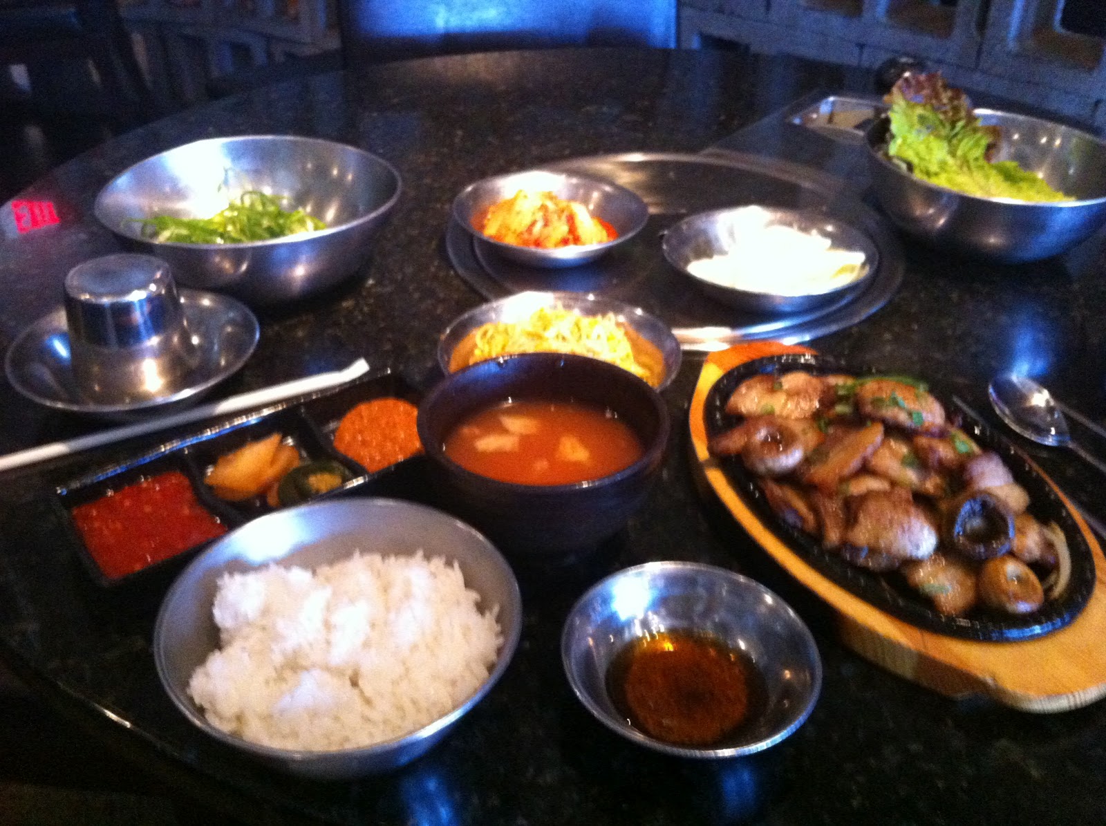 Revelation!! Sadly, my celebration was short-lived as with every bite, something fell out of the other end of my lettuce wrap. So I did the next best thing. I asked for another bowl of rice and more hot pepper paste, and ate two bowls of pork belly and rice, with hot pepper paste. It was good, but a REALLY expensive lunch. I don’t know that I feel the need to go back, but it was a much better meal than my last attempt at Korean food.