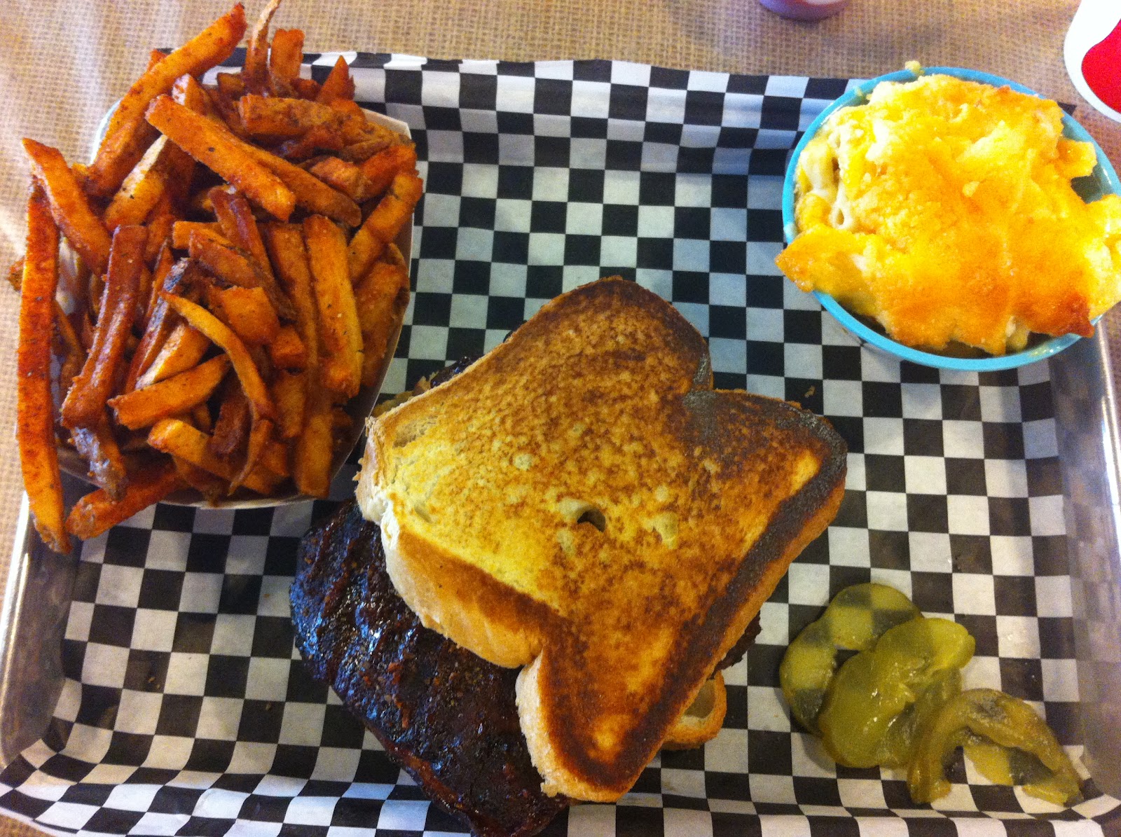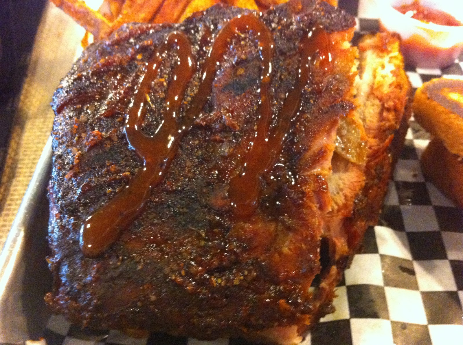 The fries weren’t very good, at all. Kind of over done and over seasoned. The mac-n-cheese was as good as rumored – melty and gooey and fork-licking good. The ribs were cooked well and had a good taste. The Community Q folks know how to handle their barbecue pit – both meats were moist and smoky, with just the right amount of char.