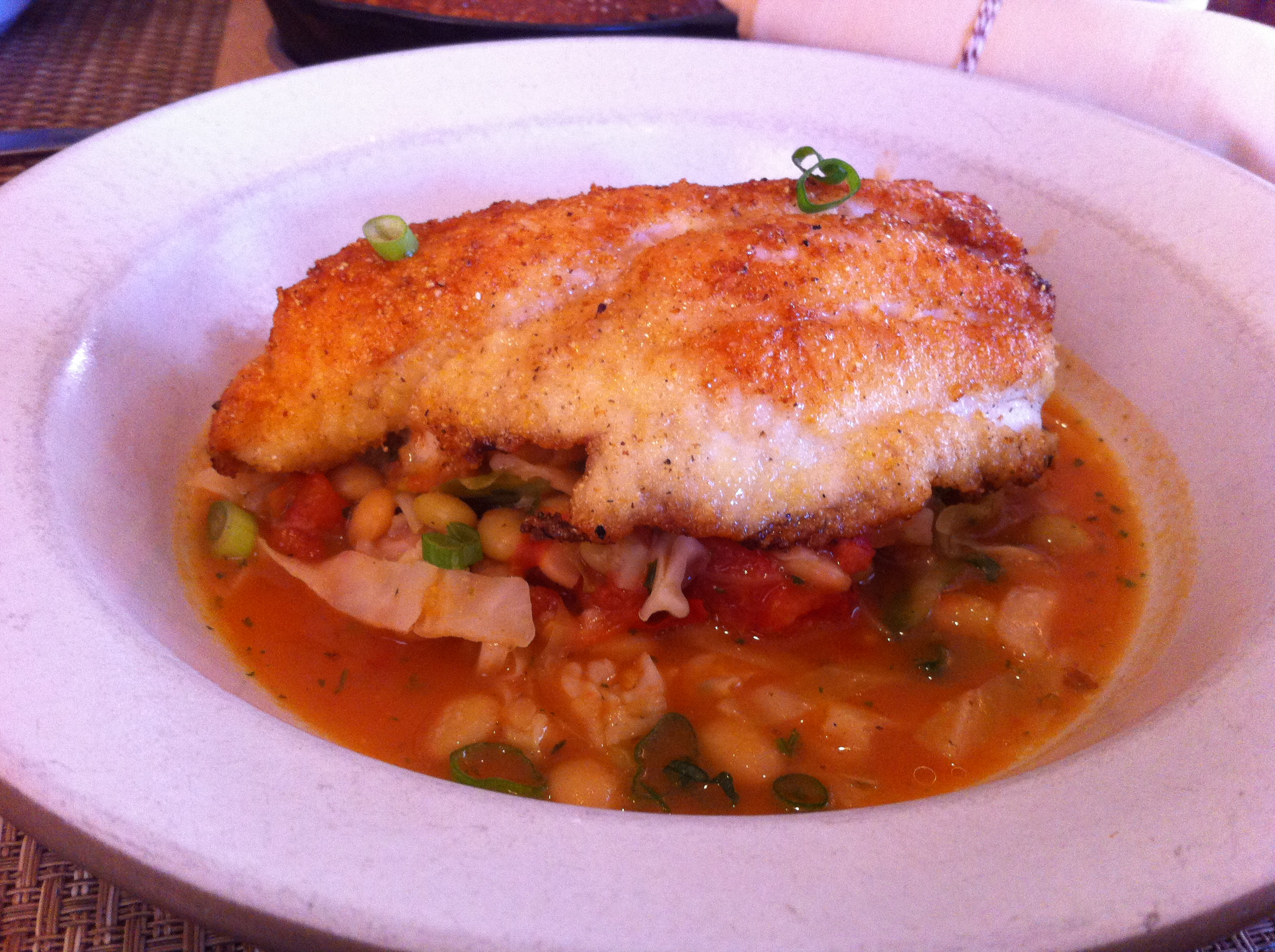 Jo ordered the cornmeal crusted catfish, served with corn, tomatoes and onions.  There was very little of the catfish, or anything else, for that matter.