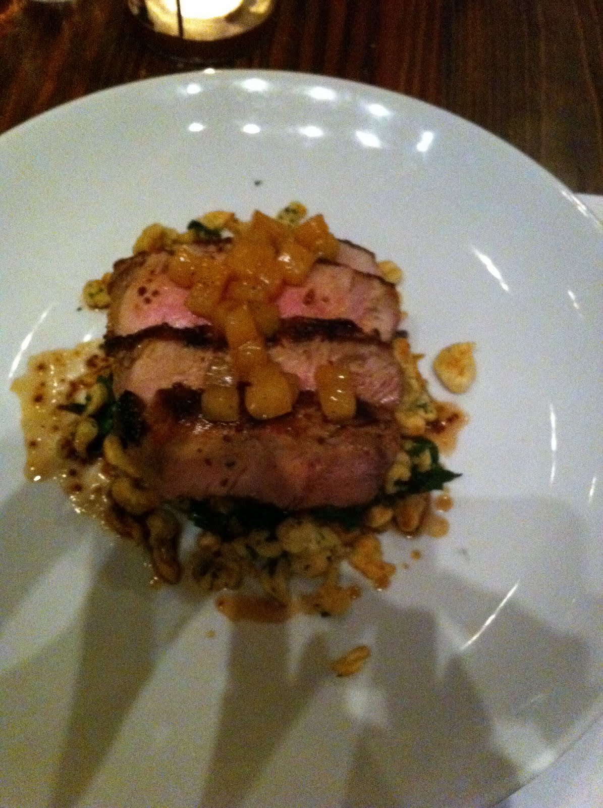 Very open space with a fairly lively bar scene.  For dinner that night, I had pork tenderloin with spaetzle (kind of an egg noodle) with chard and vanilla pears.