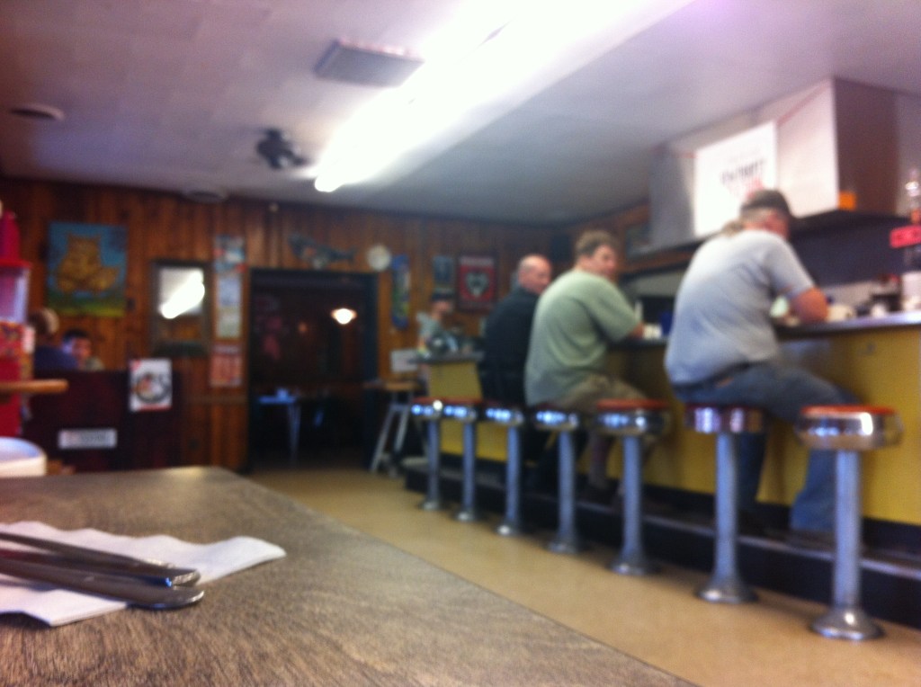 One morning, I awoke up bright and early (at 4:00) and couldn’t go back to sleep. I tried for 45 minutes or so, gave up, got up, got dressed and went to the gym. Worked out for an hour, cleaned up for work and it was still only 6:15. This meant that I would HAVE to go sit down somewhere and eat breakfast. I headed to “the city” and had my heart set on Ria’s Bluebird, particularly their huevos rancheros. When I got there, about five after seven, the parking lot was fairly empty. And the “OPEN” sign wasn’t lit. Turns out that they don’t open until eight…..