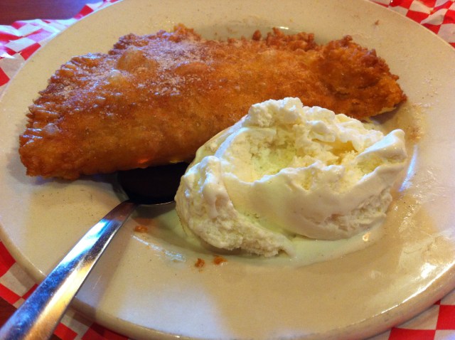 Regardless, they cook up some mighty fine ribs at Rib Country and we’ve often considered taking the two-hour drive to get some ribs.  And the fried pies.  I haven’t mentioned the fried pies. These are some mighty fine fried pies – actually about the best I’ve found that aren’t home-made.   They make them hot to order, and serve them with Breyer’s vanilla ice cream.   The only way that they could be any better would be if: