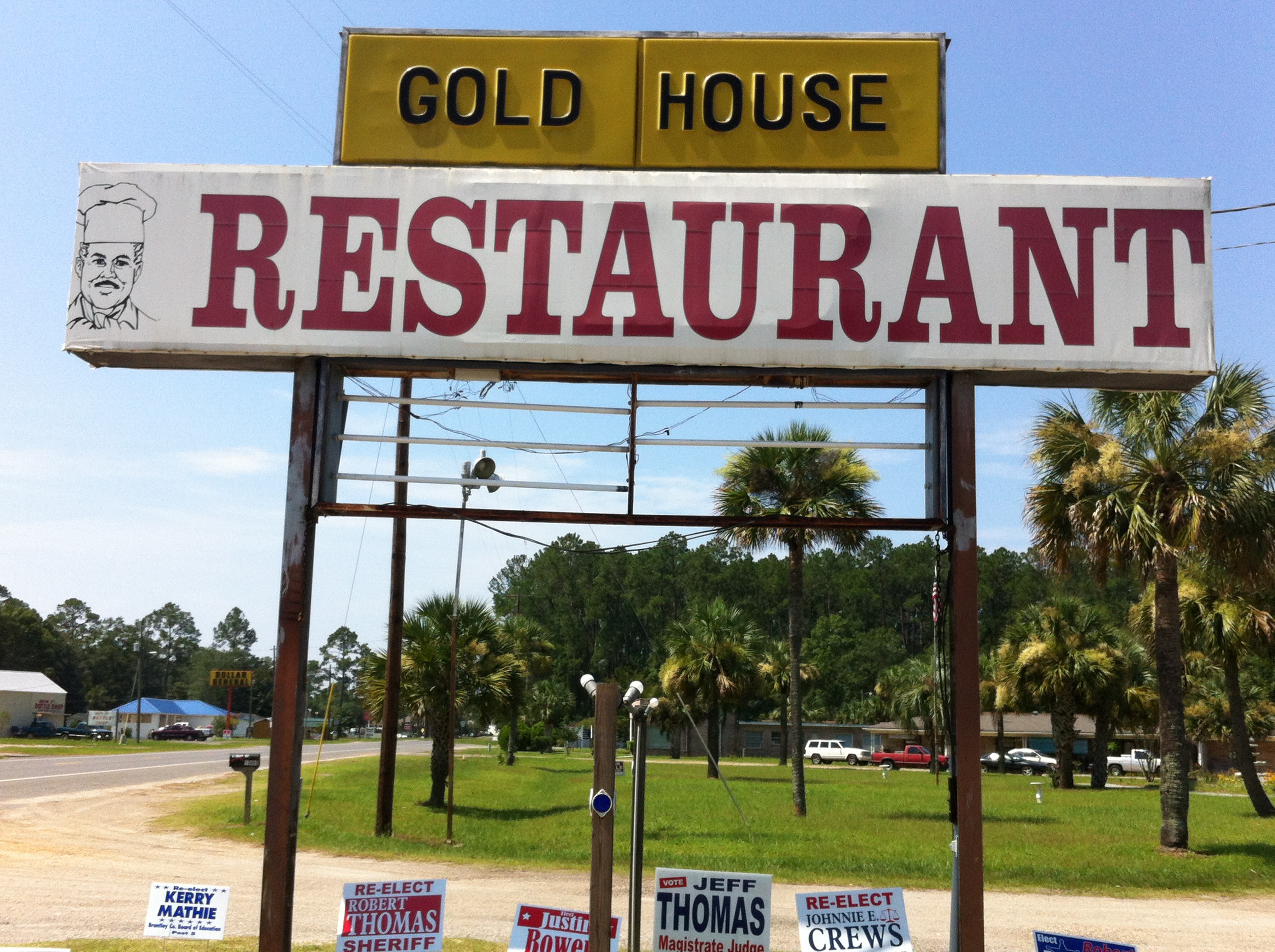 In the midst of a South Georgia swing on business, we were heading from Jacksonville to Jesup and lunch-time was right around the corner. We missed our first chance for food in Folkston (it was only 11:00) and as we rolled into Nahunta, GA (population slightly less than 1,000), we knew we needed to find something. We narrowed it down to two choices: the Gold House Restaurant and Jeri-J’s.
