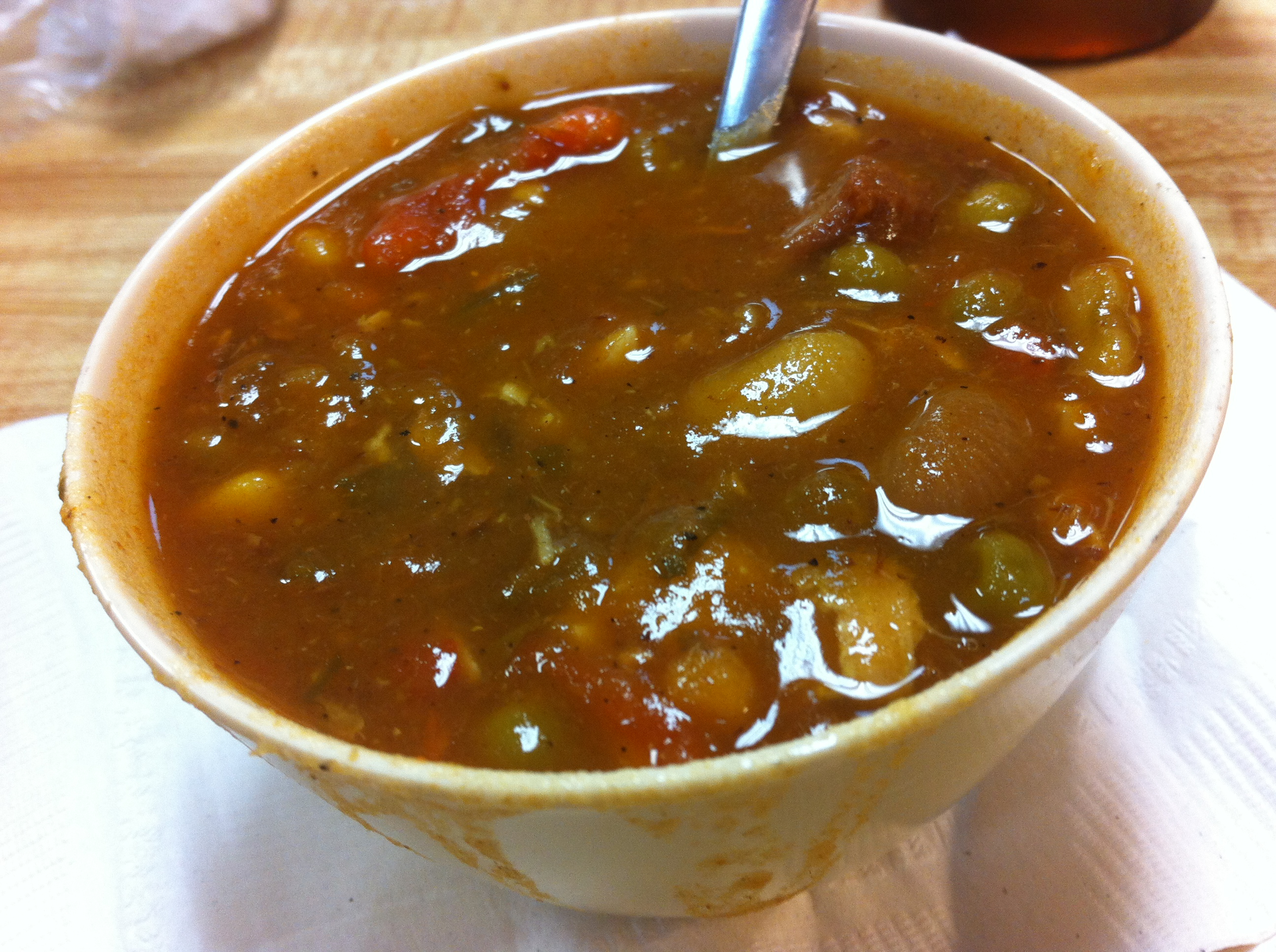 The stew was much more like vegetable soup than Brunswick stew, in my book: