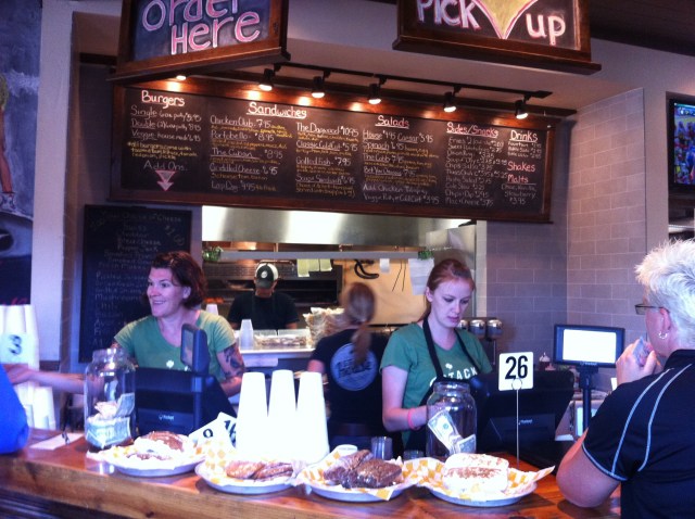 With the menu on the wall, you choose between burgers (a six ounce patty that is the basis of their single, double and triple) with assorted toppings (cheese, bacon, Texas chili, avocado, grilled onions, grilled mushrooms, fried egg or grilled fresh or pickled jalapenos), sandwiches or salads with assorted sides.