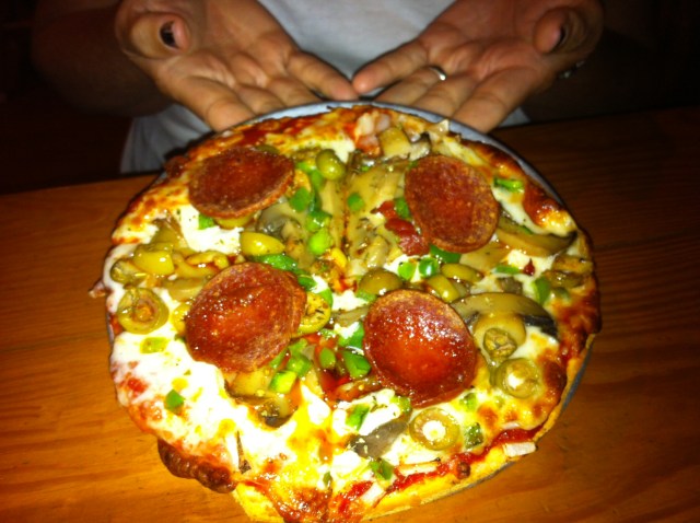 We both chose a small pizza (7 inches in diameter) – mine was pepperoni, ham and bacon (a basic pig pizza).