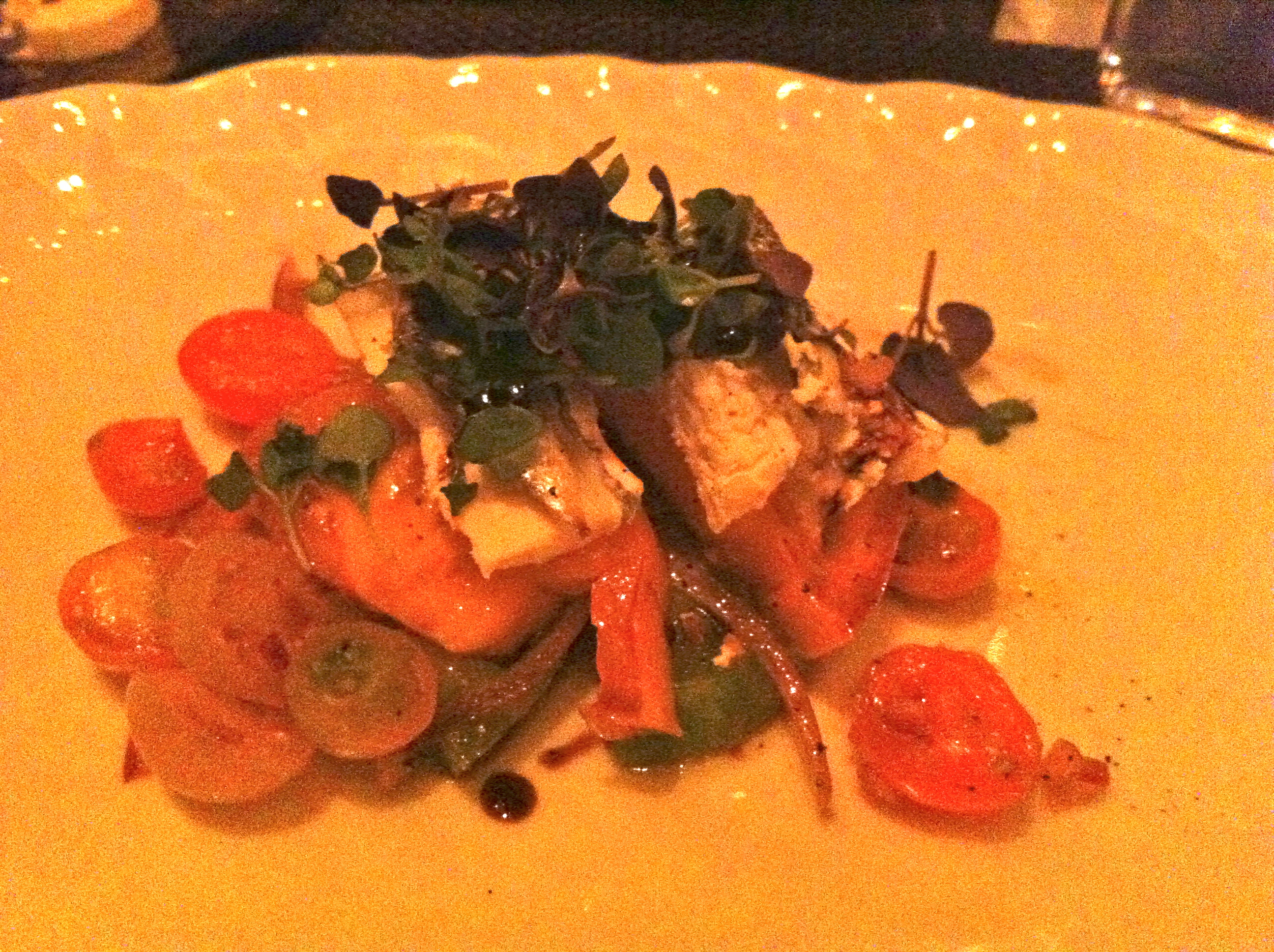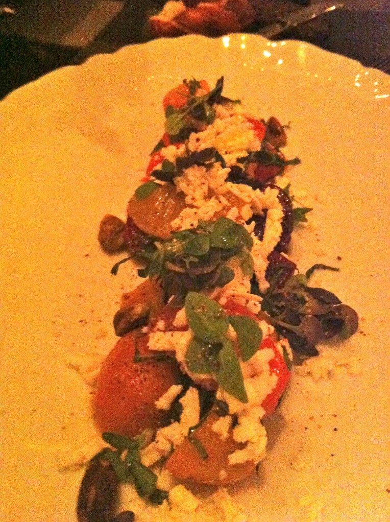 Jo began with a Roasted Baby Beet Salad with Humboldt Fog goat cheese, toasted pistachios, citrus, micro basil, and mint. She (effectively) licked her plate clean.
