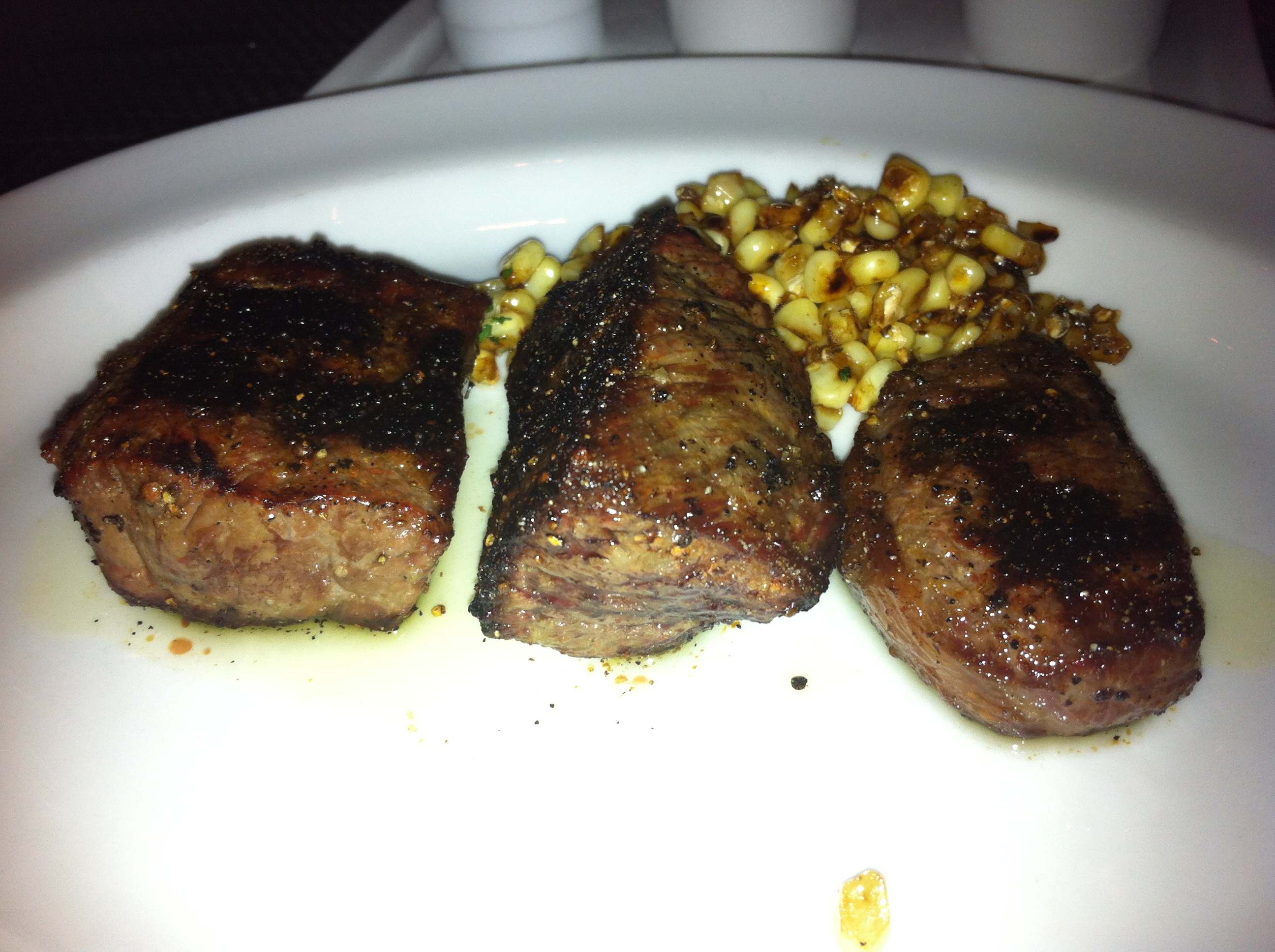 Being a dedicated carnivore, I went with the New York sirloin “sampling”. From left to right: