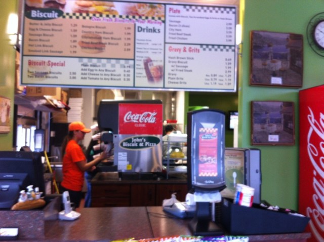 Several weeks ago, a friend of ours from Journey Group told me that we needed to try out John’s Biscuits & Pizza.  With a name like that, how could it be a bad choice?  Sure, you wouldn’t (probably) want biscuits and pizza together (I don’t know that I’ve ever tried it), but, separately?  Two perfectly acceptable choices.