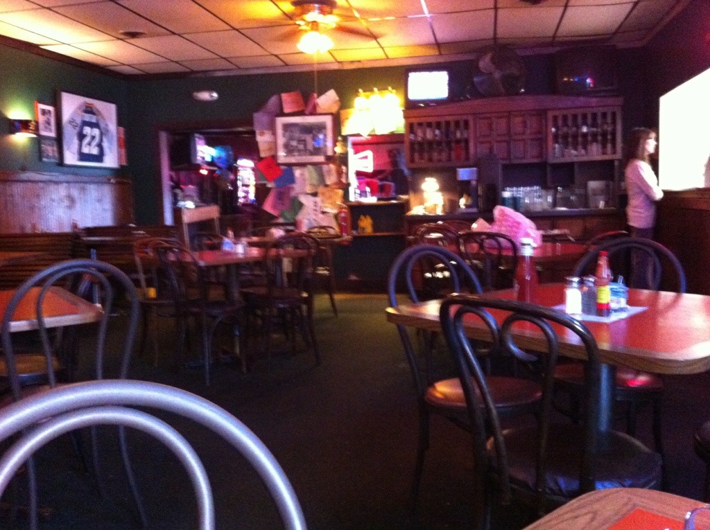 Convincing her that it couldn’t be that bad, we parked on the side and walked up to the front door, which opens on the bar (above).  As we entered, the impression didn’t improve.  The bartender (who is apparently the only person capable of pouring a soda, based on refill issues) was carrying on an EXTREMELY loud conversation with the guy sitting at the bar about being in Denang and visiting the coroner there during the Vietnam War.  We walked through the bar into the dining room