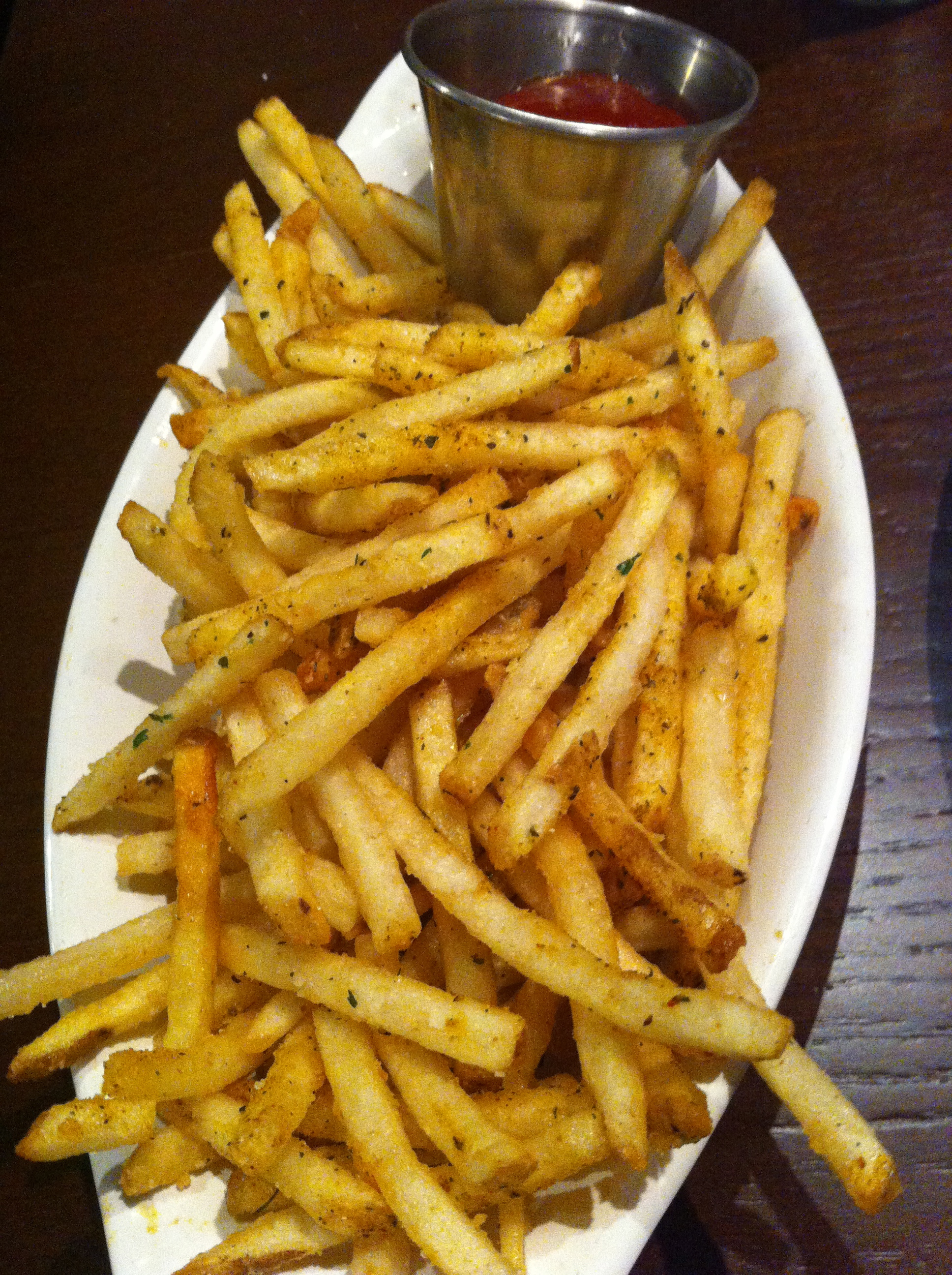 The gravy on the cheese grits was exceptional, as good as I’ve had and the flash-fried shrimp on the top were among the best shrimp I’ve ever had. An outstanding dish. When I complemented it with a humongous side of french fries,