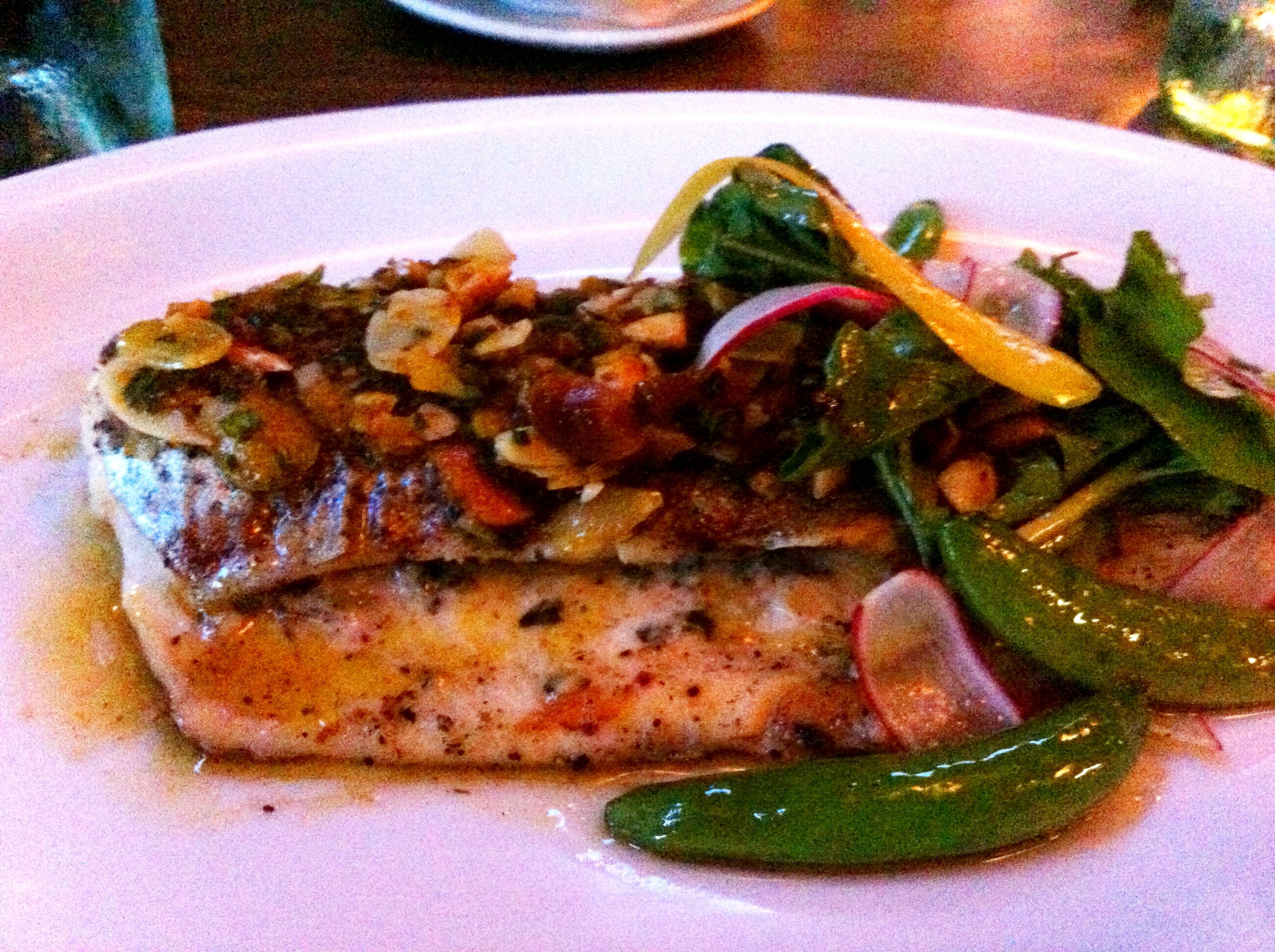 She said that it was quite tasty, although she’s not a fan of fish with the skin-on, which is apparently an element of “Boy Scout style”. We ordered a shared side for the table, spring snap peas with pancetta