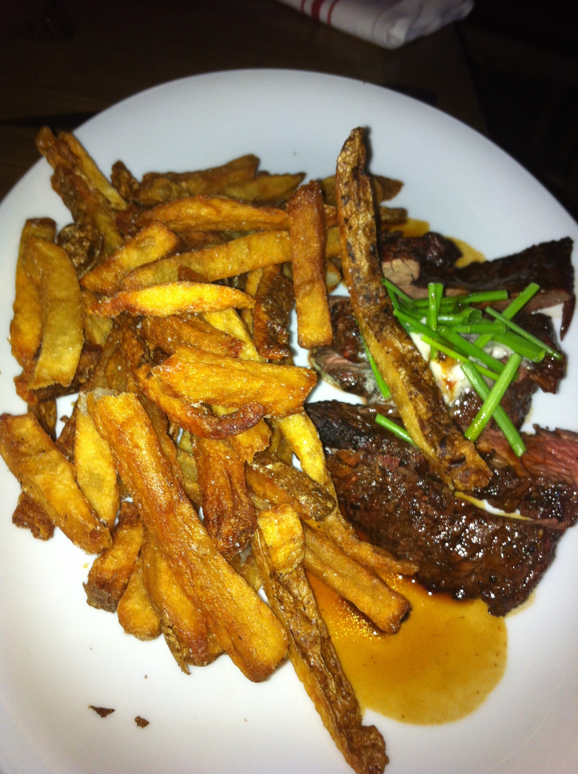 Her steak was prepared exactly as ordered and there was not a bite remaining to be shared. The frites were exceptional in that way that only expertly doubled fries potatoes can be. And those were shared.