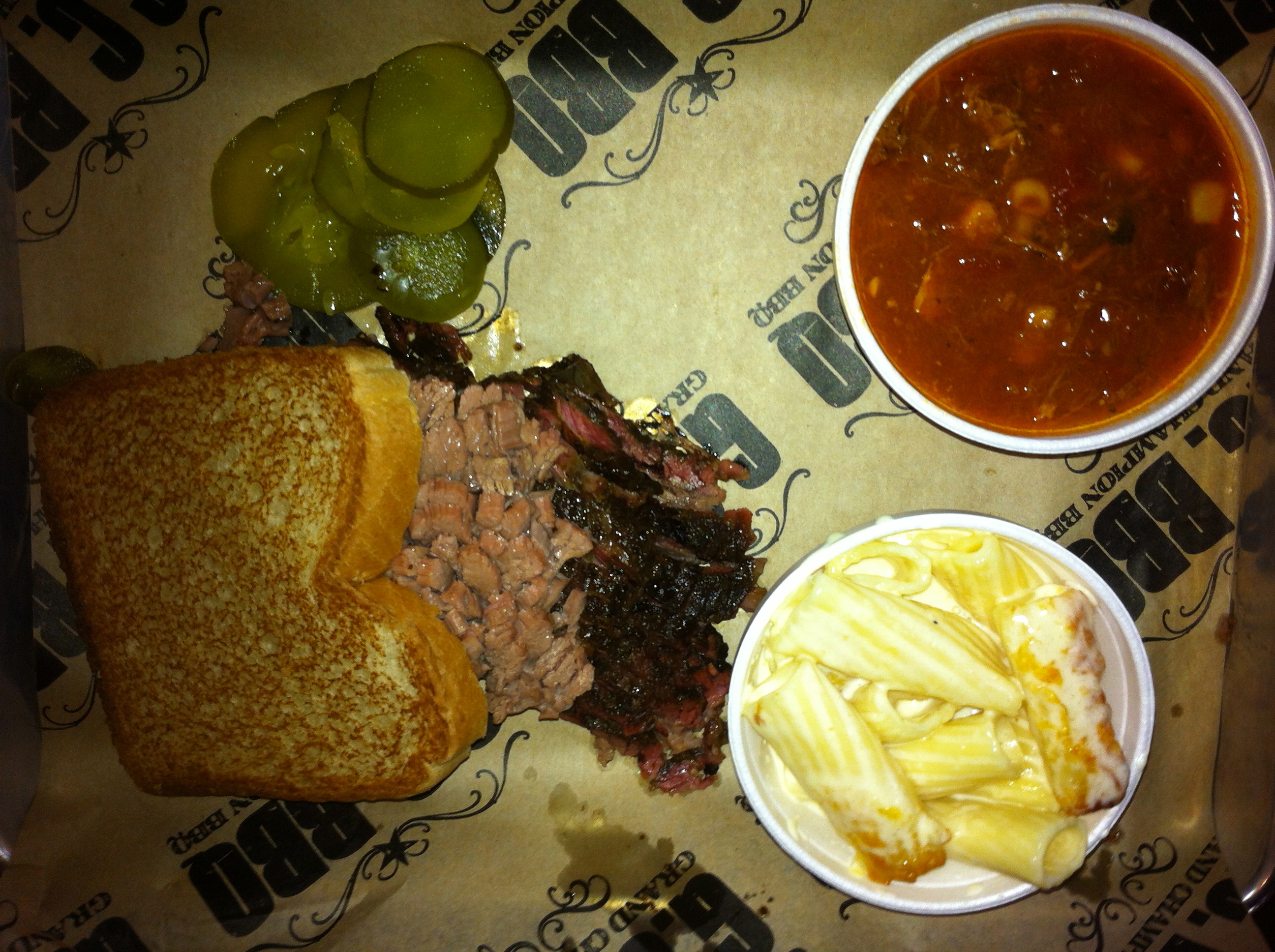 I’d been wanting to try Grand Champion BBQ, since I saw them listed in Atlanta Magazine’s May, 2013 barbecue issue. When we were discussing lunch today, I was reminded, as was my dearest, of last year’s 4th of July rib debacle where we struck out in 4 places (The Old Brick Pit, Heirloom Market, Thompson Brothers and Jim-n-Nick’s – yes Jim-n-Nick’s ran out of ribs by 6:30 last Independence Day. The entire experience is detailed in the footnote to this post). At her urging, I called to see if where I wanted to go (Grand Champion) was open: