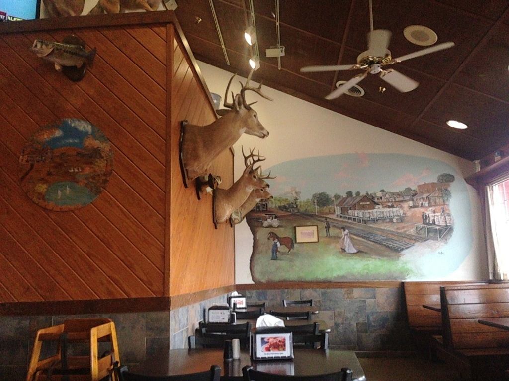 I found a clean table in the room to the right of the registers (where the above picture was taken) and took a seat while I waited. I can think, easily, of a half dozen BBQ places with animal heads on the wall and there were plenty of deer, fish and a couple of foxes here. But you know what’s always missing? Pigs, cows and chickens.