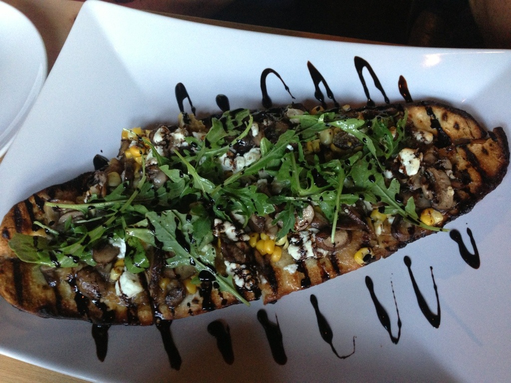 according to those who like such things (not me – the whole “mushroom thing”), was amazing. The waiter almost lost a finger to the two ladies when he tried to take the non empty bowl. They both commented on how every bite (not just the top quarter of the bowl) tasted like the truffle oil. In retrospect, we should have stopped at flatbreads and popcorn, but we went on to dinner.