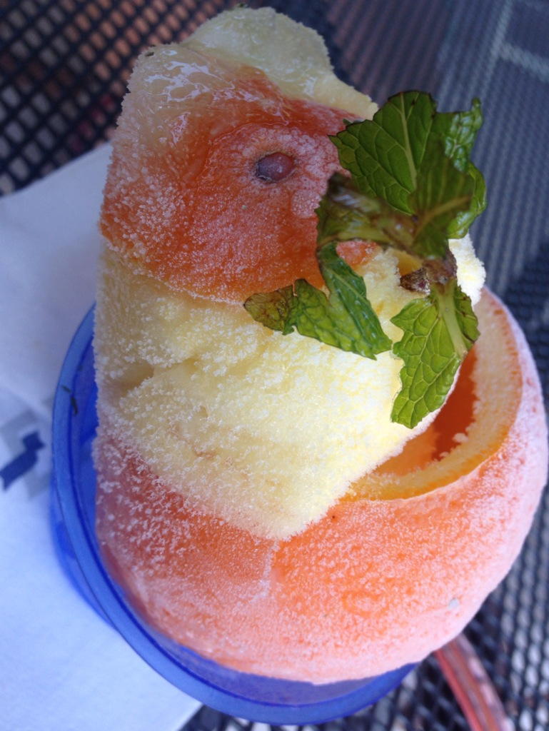 I’ll have to admit that I went with the orange sherbert solely because it was served in a hollowed-out orange.