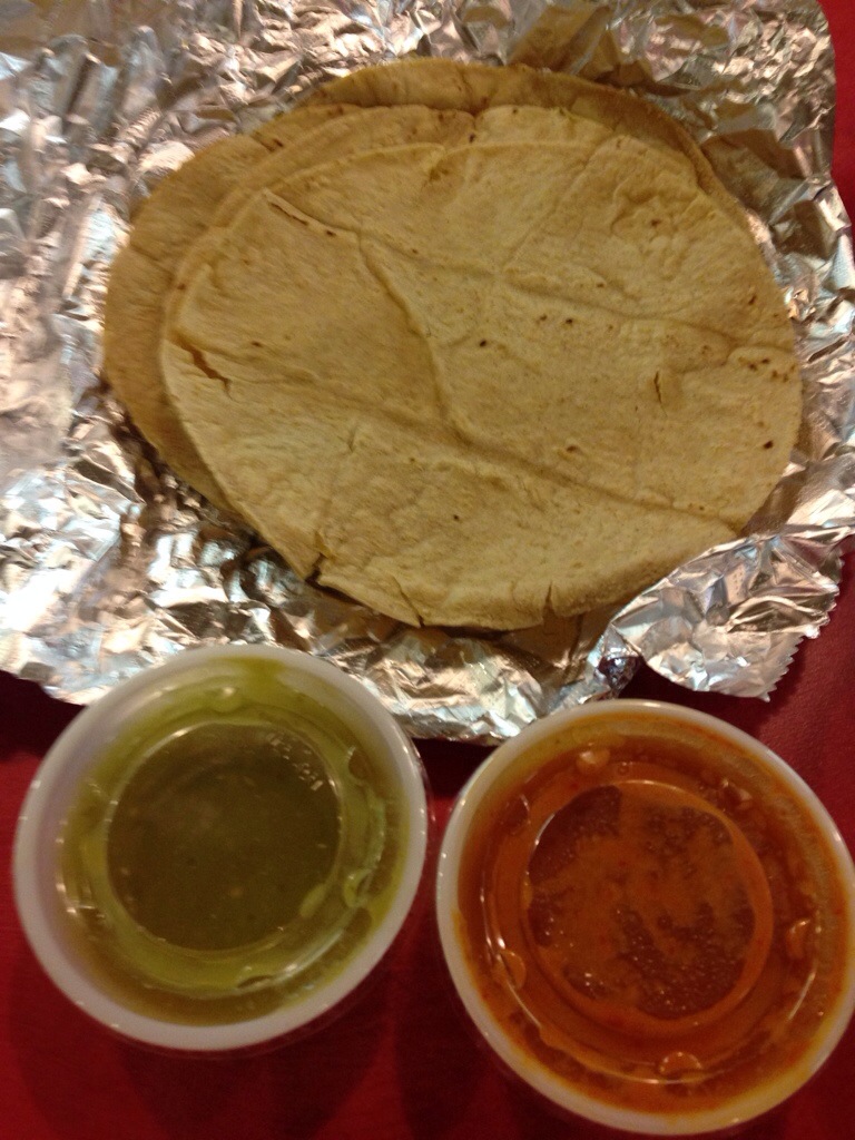I went back and picked up the two containers of sauce – a mild chili verde (green) and ridiculously hot, and really good hot sauce (red). I plan to go back and try the puposos (which are what I believe that my daughter recommended. What a pleasant find.
