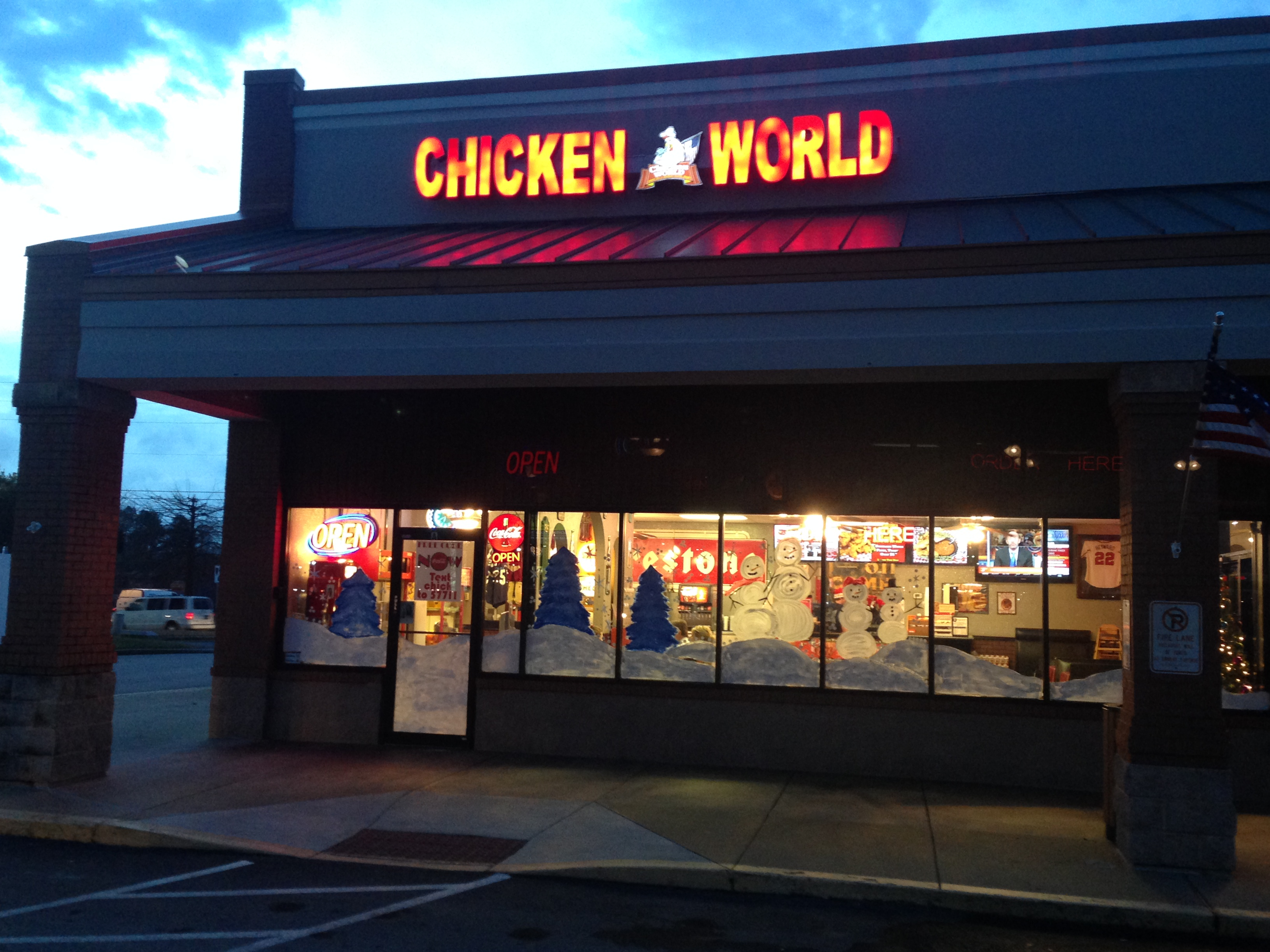 I became intrigued with going to Chicken World when I first saw the big billboard on Hwy 278 advertising their chicken cheddar cheese fries. How can that combination not be excellent? On this Friday evening, it became our destination. When we arrived, right at 6:00, the place was completely empty. How odd. The walls were decorated with jerseys from the local high schools’ football teams and posters detailing season schedules for high school football, baseball, basketball and swimming dating back into the 1990s.