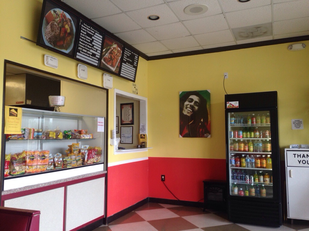 The menu is standard Caribbean dishes – chicken, goat and fish (served in a variety of ways) and oxtails, along with white rice or rice and peas and steamed vegetables or cabbage. They have no soda fountain, but they do have a cooler full of drinks, including many Caribbean sodas. While I was waiting for them to fix my plate – dipped from giant pots on a series of stoves, as it is in most every Jamaican restaurant that I’ve ever been to – two young ladies came in. They were students at a local school and one was, apparently, a regular, based on her comments – I gathered that when one said to the other that she felt like she was cheating on her “regular” spot. I asked about the food and the more outspoken one said that she didn’t eat beef, but the chicken dishes were all good. I ordered a beef patty,