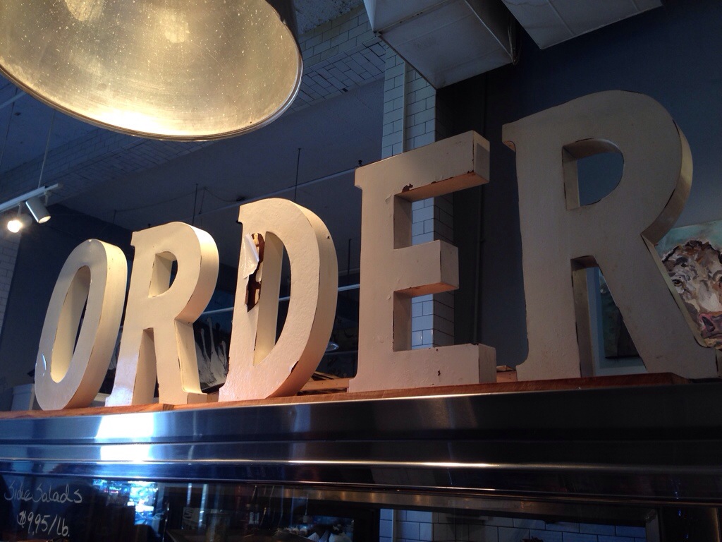 We’ve been to Star Provisions on many occasions – to pick up cheese or bread or something else – even a perfect anniversary gift one year. But we had never been there to eat – until today. Heading to a 2:00 GT basketball game, I wanted something different than one of our usual stops, so we headed to Westside Provision District and found a place in the incredibly crowded parking lot. In addition to the wine, cheese, meat, seafood and gourmet foods for sale in the grocery, they also serve food from 6:00 am to 5:00 pm daily. To get to that side of the store, you walk in the front doors, turn right, through the bakery, and head toward the giant ORDER sign.