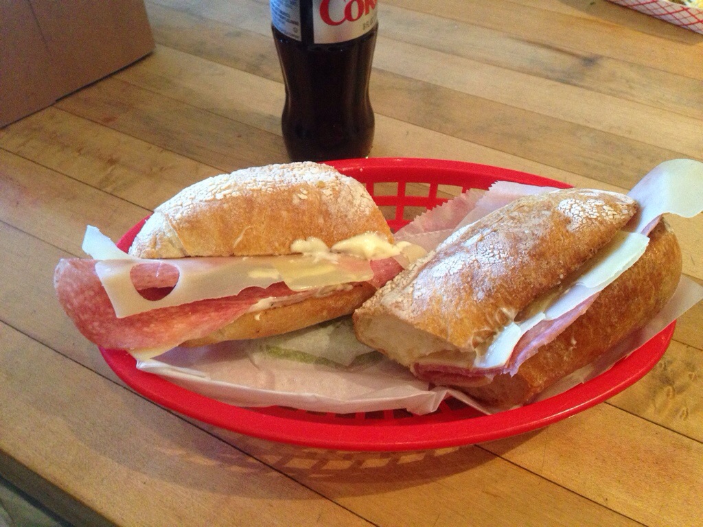 which she said reminded her of the glorious street sandwiches in Paris (I saw that they had a prosciutto and parmesan on the menu as well). And, even though they don’t tell you about the pickle, they have the decency to put it underneath the wax paper below your sandwich. Nice touch.