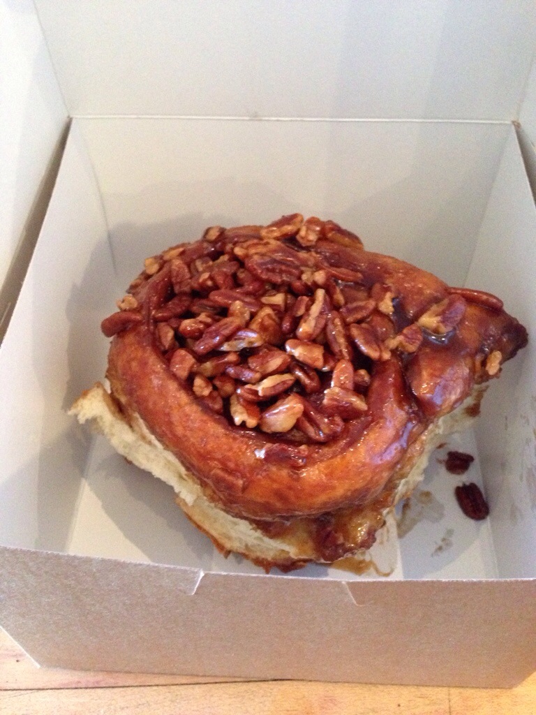 In addition to the eat in food, you can also order many of the sides along with the blue plate entree (and a couple of others), by weight, to carry out. They also have a fantastic bakery, which we had tested before and from which we brought this pecan sticky bun home for an evening snack.