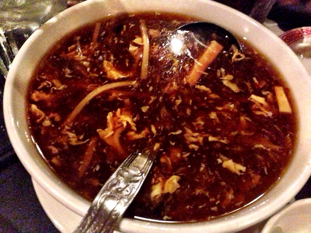 it seemed like we had driven much more than the thirty-plus miles from our home to BuHi – it was as if we had crossed a border. The Asian to Anglo ratio was two, or more, to one (generally a testament to authenticity) and the place was absolutely packed. The others were already seated when we arrived and we dove into the menu, which included some very helpful pictures. We began with a “big bowl” of hot and sour soup