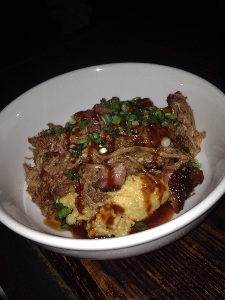 3) The pulled pork on grits (like a shrimp and grits with barbecue instead);