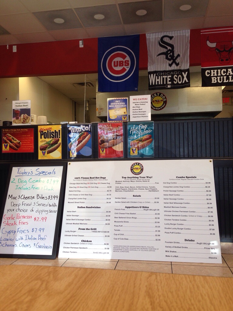I just came across this review, and as the owner of Lucky Dog, I’m sorry you didn’t have a good experience at our restaurant. I invite you to come in again and have lunch on the house to give us another try. Your blog post is not an accurate description of the food. Our chili does not have beans in it and never has. Our hot dogs are skinless so there would be no casing on them as you described. A Chicago dog would most certainly never had lettuce on it either. I don’t want your readers to think we normally put lettuce on a Chicago dog because it is a very specific recipe of mustard, onions, green relish, tomatoes, dill pickle, sport peppers and a dash of celery salt. Our menu board was leaning against the counter that day because it fell down from its original place above the register and hit me in the head. The floor was a much safer place to keep it for the remainder of the day. We have since replaced the board above the register. Yes, our drive thru is closed, we have never really used it. We are still fairly new and not ready to have customers coming in from two locations just yet. We are passionate about our food and want our customers to have a great experience when they come in. Most of our customers become regulars and they rave about the food. I’m also offering any of your readers a free regular sized hot dog with their choice of toppings for free, no strings attached. All they have to do is mention this blog.