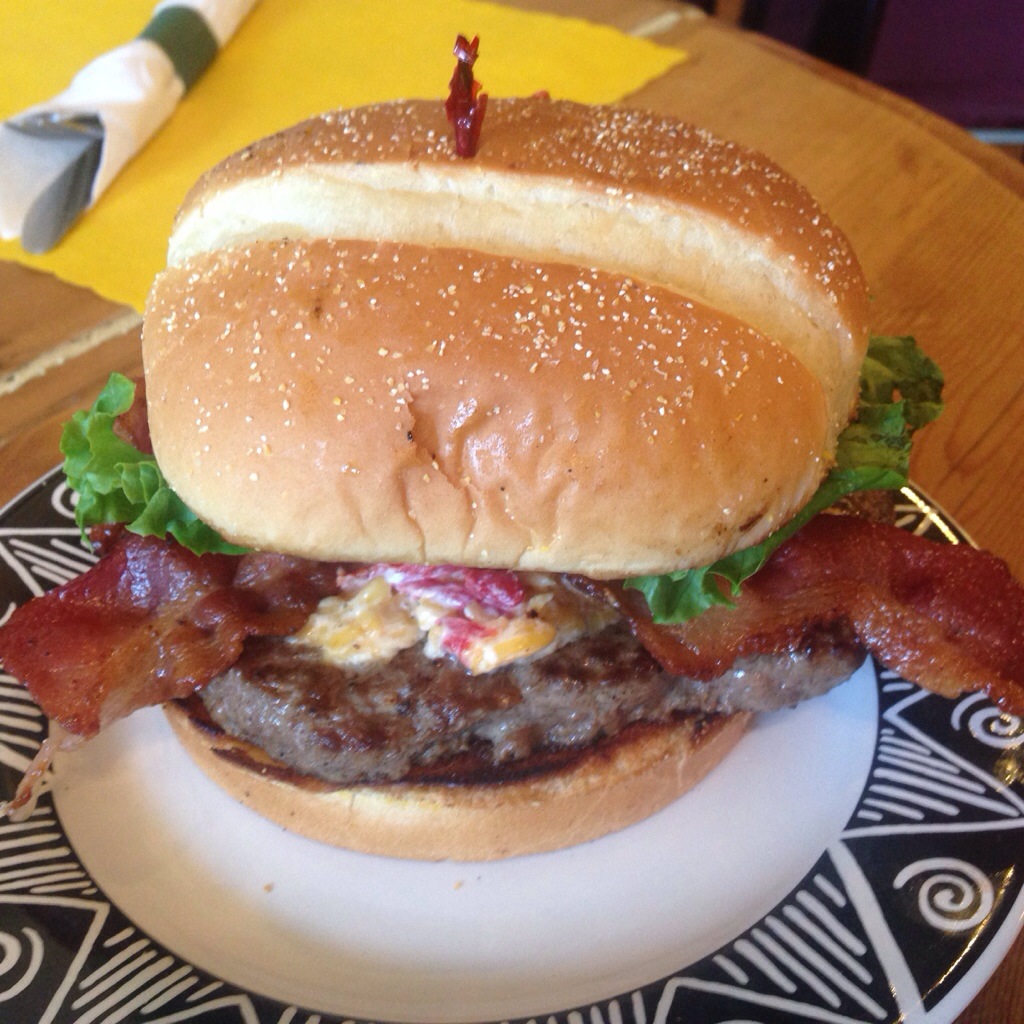 The country fried steak was fine, albeit somewhat small for a breakfast serving. It appeared to be a food service steak, as did the patty for the burger, as opposed to either being fresh. Nowhere did they advertise that everything was “fresh”, but a boy can dream, can’t he? The biscuits were fairly good, as was the bacon. The pimento cheese, eggs and gravy were all okay. But the burger, because of the preformed and well-done patty was sub- par. Granted, one set of couple friends goes most often for lunch as opposed to breakfast, so maybe we ought to try that? And the cakes on display did look good.