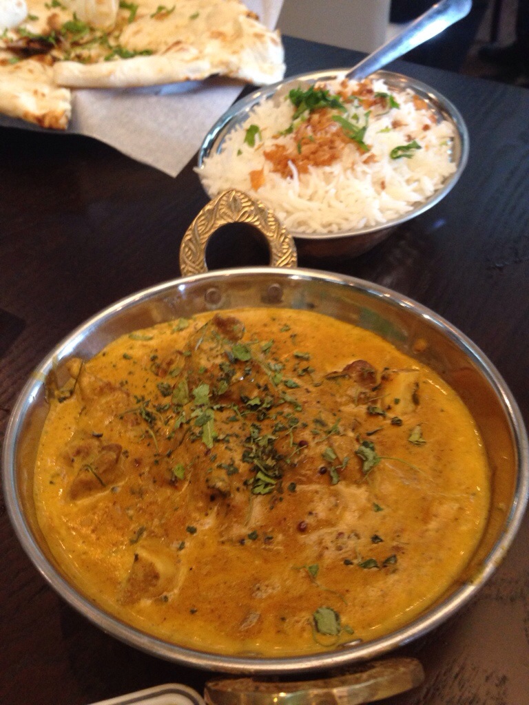 I also ordered a shahi karma dish, with goat meat pieces simmered with yogurt fried onions and aromatic herbs, in a semi dry gravy.