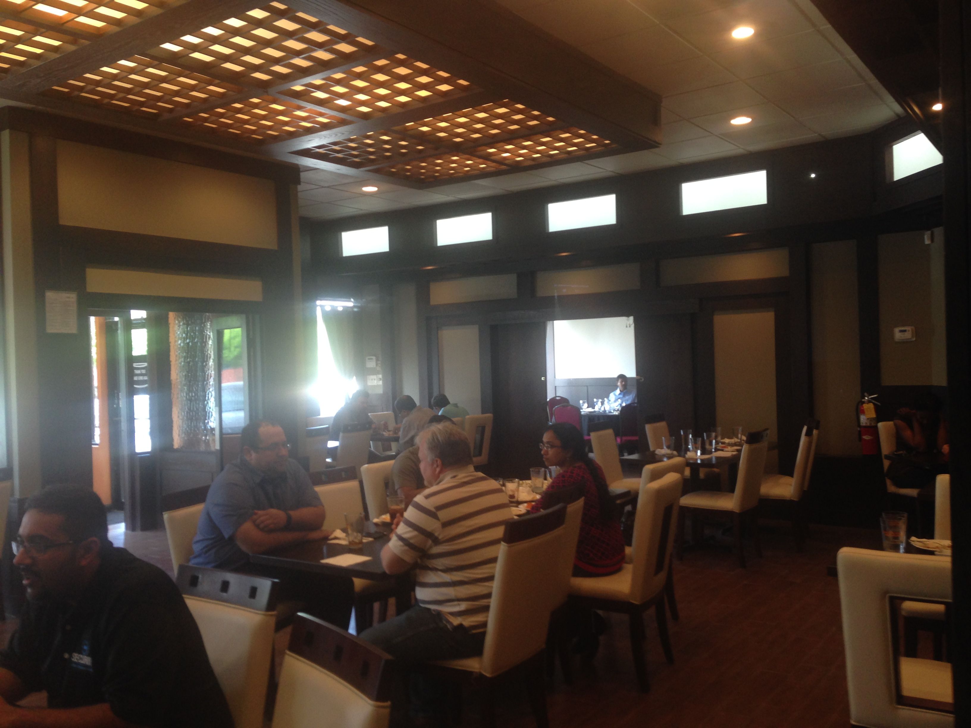 In talking with the chef-owner on a second visit (to try the menu out this time), he and his family (cook book author mom & front of house dad, plus assorted cousins) had been looking for a spot for a restaurant for several years. This former Japanese steakhouse fit the bill. He said they weren’t looking to be your typical Indian restaurant and made conscious decisions to decorate in dark woods and light fabrics, and to use real plates, silverware and glasses. He also said that they he specifically wanted the buffet to be colorful, not just different shades of red.